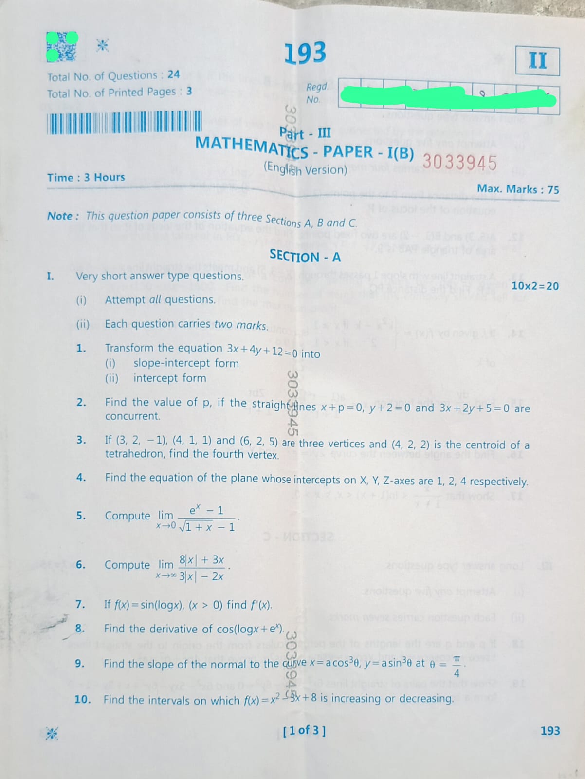 The Maths 1B Previous year question paper helps you to boost your score & confidence on public exam. This is a official public paper held on previous years . Do practice – Ace the exam.
