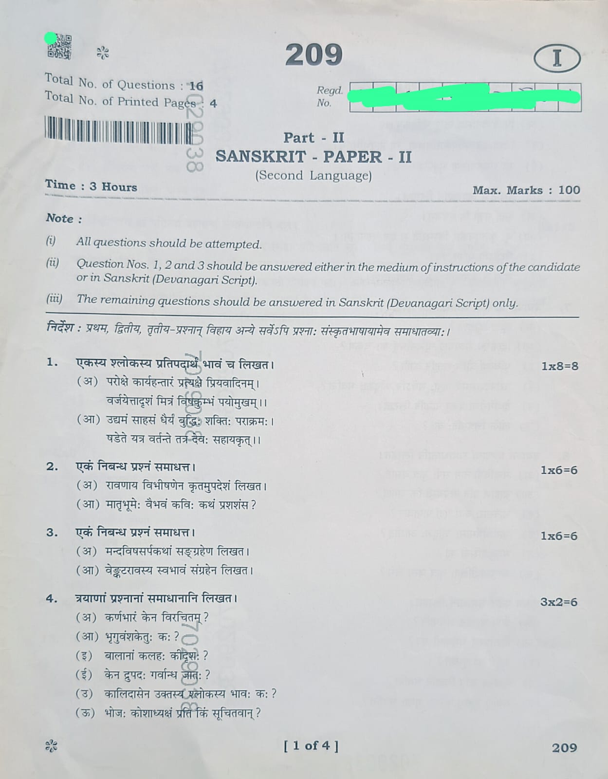 Sanskrit – 12th IPE PYQ (AP&TS)